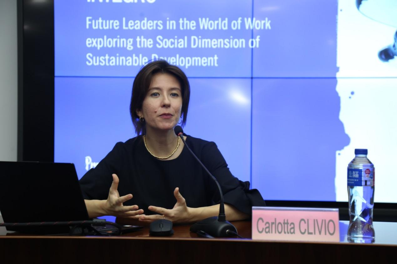 講座中,Joel ALCOCER先生、Carlotta CLIVIO女士圍繞國際勞工組織國際培訓(xùn)中心(ITCILO)的歷史及任務(wù)、ITCILO對2030可持續(xù)發(fā)展的支持、全球勝任力發(fā)展新格局——青年面臨的情境和前景,以及ITCILO 和全球勝任力發(fā)展——支持未來領(lǐng)導(dǎo)人實(shí)現(xiàn)可持續(xù)發(fā)展等四個主題,向我校師生詳細(xì)介紹了ITCILO的培訓(xùn)項(xiàng)目以及在國際組織任職的愿景。