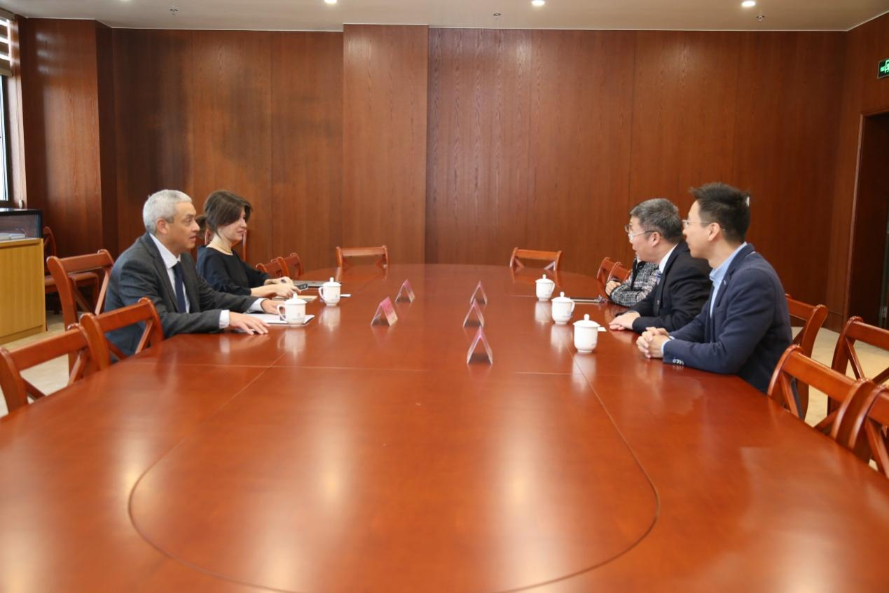 講座前,章益國與Joel ALCOCER先生、Carlotta CLIVIO女士就雙方續(xù)簽合作協(xié)議以及我校國際組織人才培養(yǎng)工作進(jìn)行了座談,并陪同參觀了WTO亞太培訓(xùn)中心。