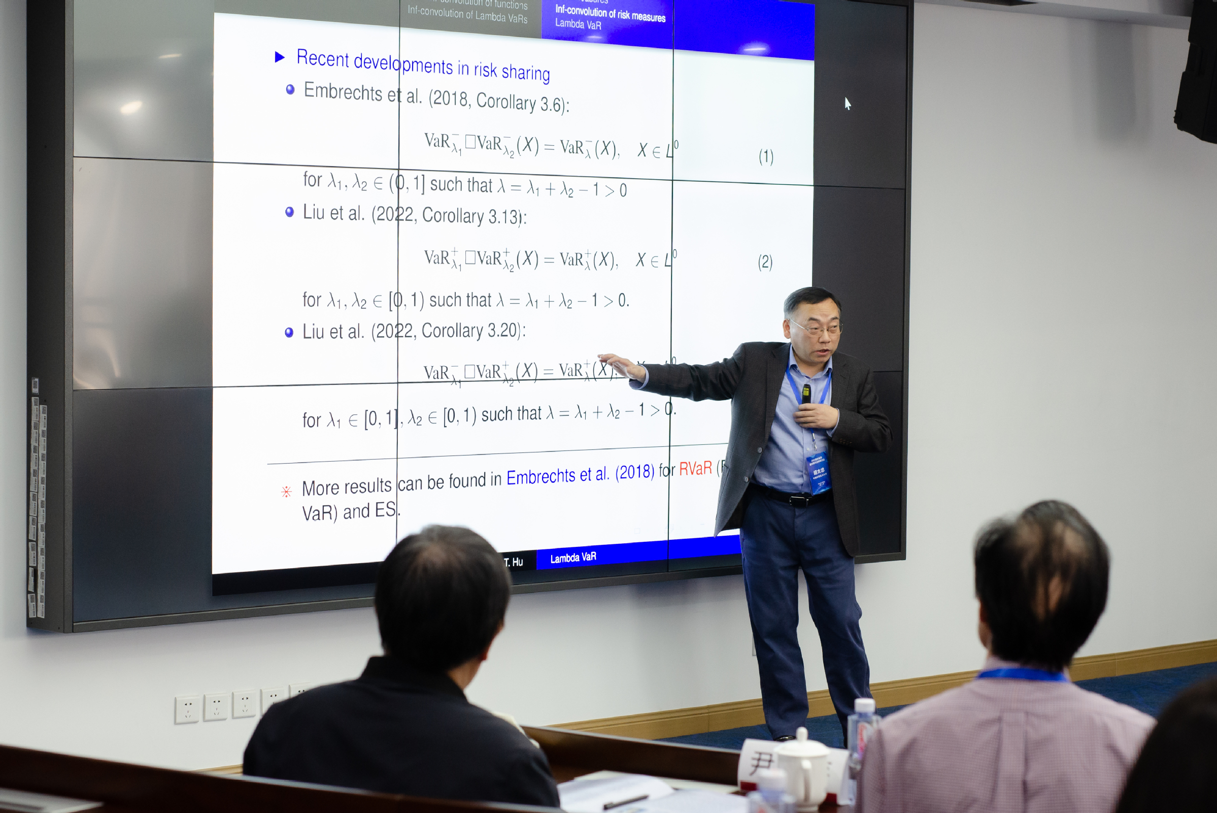 會議邀請了西交利物浦大學(xué)楊海亮教授、中國人民大學(xué)孟生旺教授、中國科學(xué)技術(shù)大學(xué)胡太忠教授、武漢大學(xué)胡亦鈞教授、蘇州大學(xué)王過京教授、天津大學(xué)榮喜民教授、南京師范大學(xué)梁志彬教授、香港理工大學(xué)許左權(quán)副教授、廣東外語外貿(mào)大學(xué)姚海祥教授、南京財經(jīng)大學(xué)姚定俊教授、福建師范大學(xué)王文元教授、上海對外經(jīng)貿(mào)大學(xué)趙蕾副教授、華東師范大學(xué)李丹萍副教授等13位專家做學(xué)術(shù)報告。專家們圍繞服務(wù)國家戰(zhàn)略需求,聚焦保險精算領(lǐng)域前沿問題進行了深入研討。