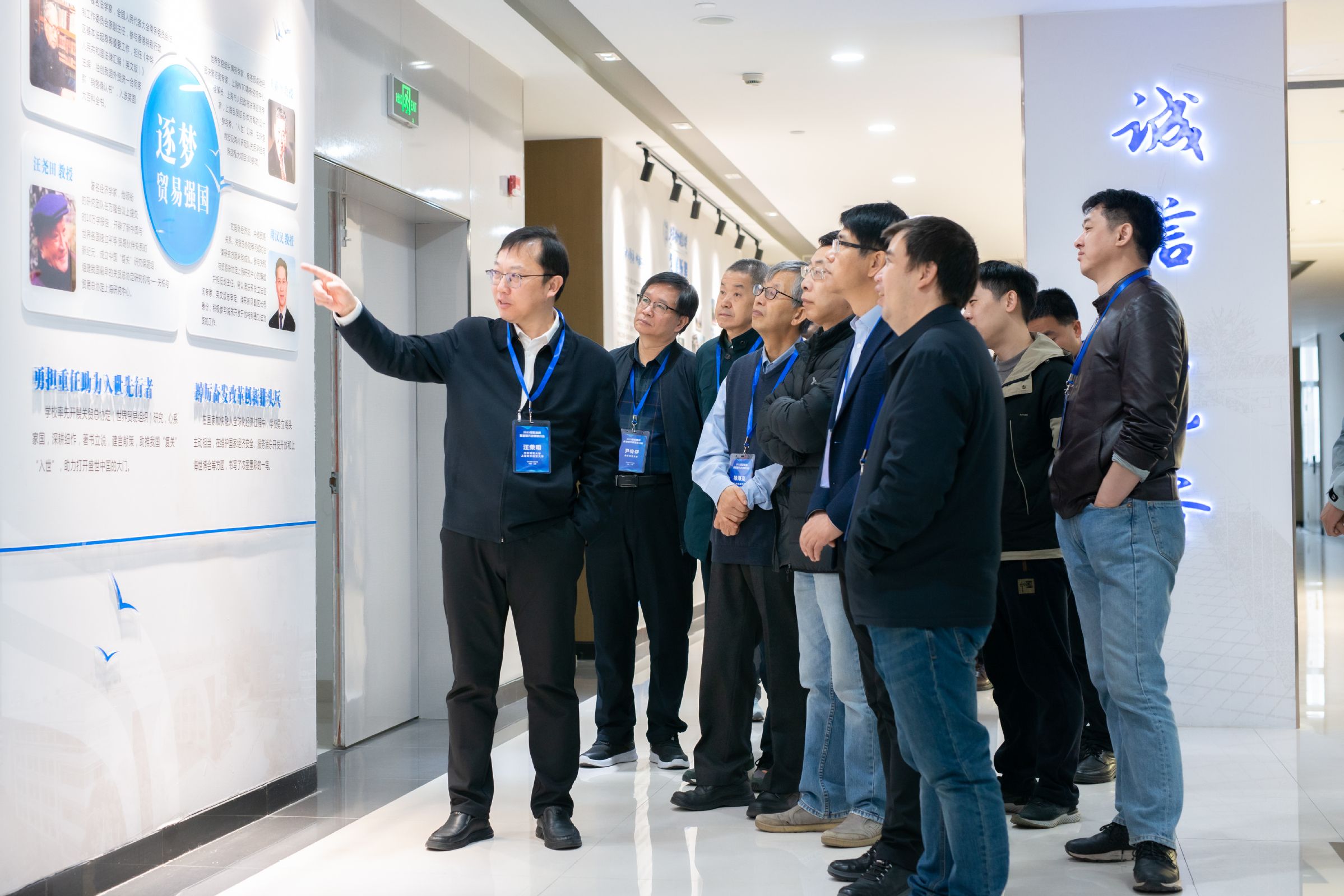 會前,汪榮明帶領(lǐng)與會專家參觀了學(xué)校智庫中心——國際經(jīng)貿(mào)創(chuàng)新與治理研究院。