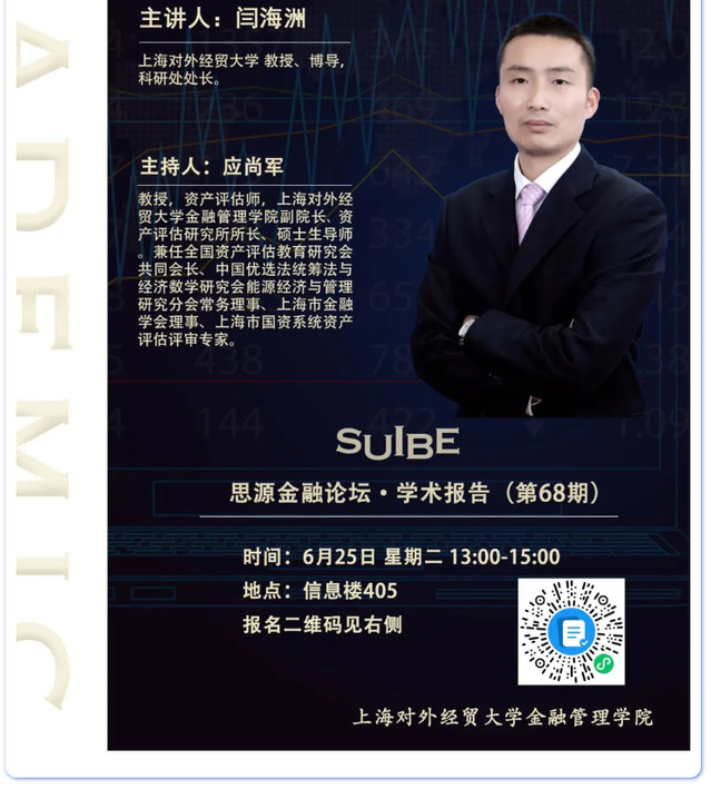 【上經貿大·科研】第十八周學術活動預告
