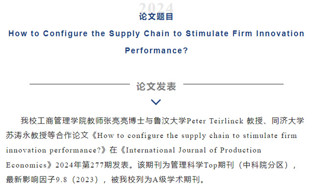 學術前沿 | 我校張亮亮博士合作論文在《International Journal of Production Economics》發表