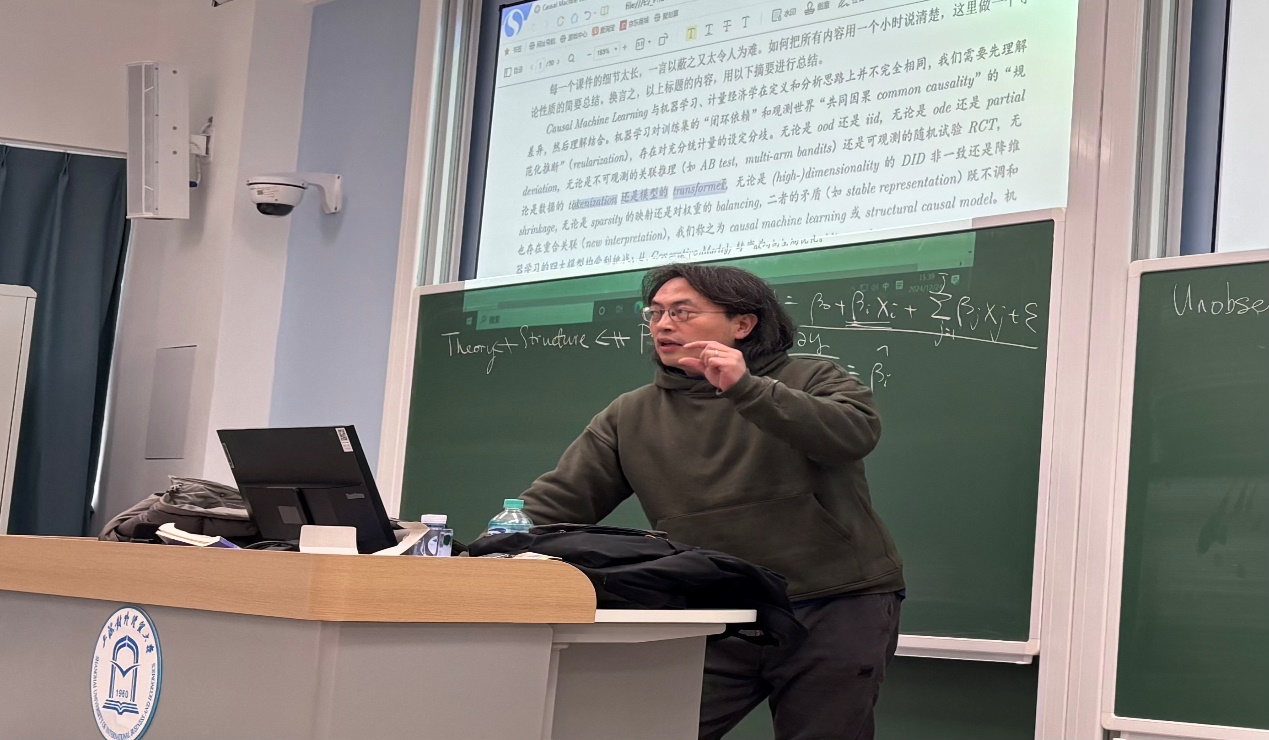 2024年12月24日,“AI賦能科研能力提升系列培訓講座”第九期活動按期舉行。本次講座特別邀請上海對外經貿大學國際經貿學院的章韜教授,他以“機器學習在因果推斷中的應用”為主題,為與會教師帶來了一場內容豐富、啟發深遠的學術講座。本次講座由科研處副處長廖佳主持,共有60余名教師參與。
