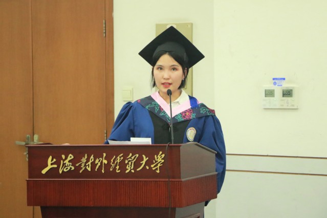 馬克思主義學院2021屆上海市優秀畢業生獲得者趙曉慧作為畢業生代表發言,她分享了兩年半研究生生涯的求學感悟,她在發言中飽含對母校、老師的感恩之情,立志踐行校訓精神,為祖國的發展貢獻力量。