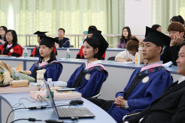 校黨委副書記、副校長祁明作總結講話。他首先代表學院對全體2021屆碩士畢業生圓滿完成學業表示熱烈祝賀,向家長和老師們對學生的培養表示衷心感謝。他充分肯定了2021屆畢業生在科學研究、社會實踐、學科競賽等方面取得的累累碩果。也對2021屆碩士畢業生提出了三點殷切希望:一是要永遠保有激情與熱愛。不但要善謀大事,更要善做小事,努力在自己的工作崗位上發光發熱。二是要永遠保有理性與堅持。弘揚貿大人務實的校訓精神,走好第一步,走穩每一步,為成長留足空間,為機遇積聚努力,在日復一日的自我鼓勵、約束與堅持中收獲更多、更好的人生成績。三是要永遠保有責任與擔當。作為青年馬克思主義理論者,馬克思主義理論最重要的傳播者,內心要永遠保有責任與擔當,為實現中華民族偉大復興的中國夢貢獻自己的青春力量。