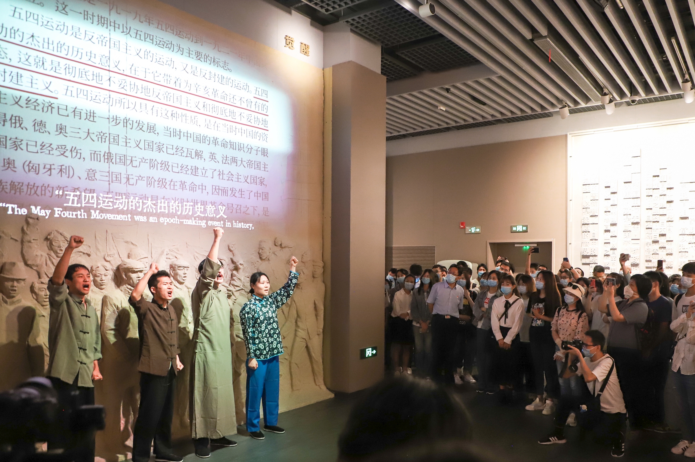 第三環(huán)節(jié)中,一大紀(jì)念館的老師與我校學(xué)生共同深情演出了話劇《青春中國(guó)》。