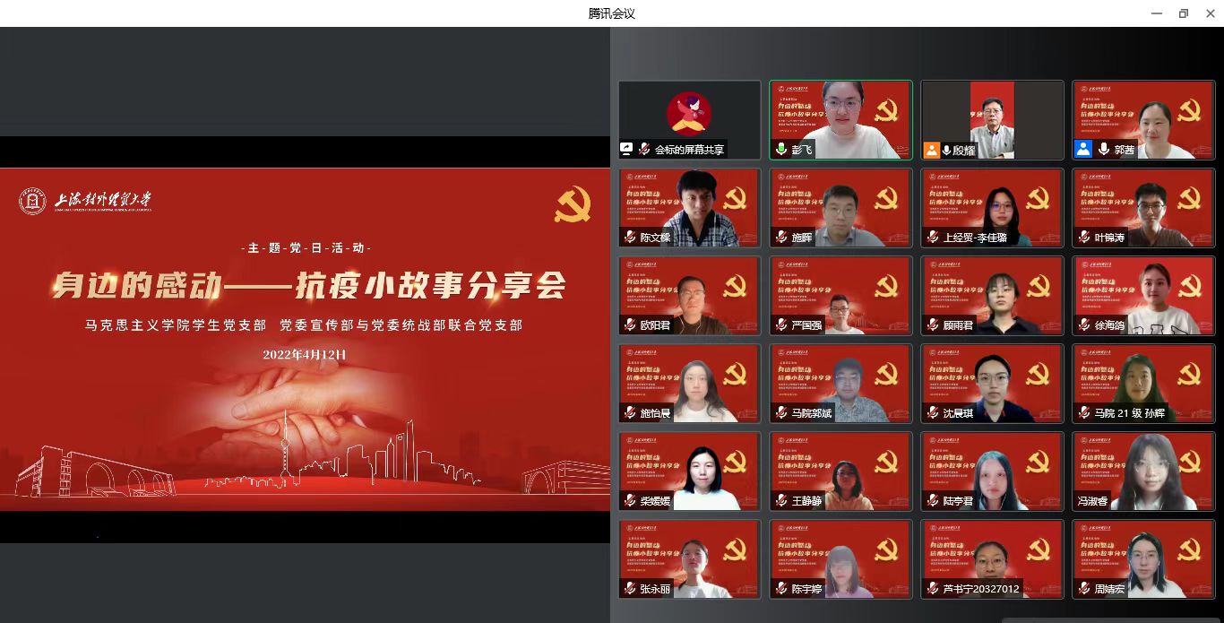 4月12日下午,黨委宣傳部與統戰部聯合黨支部和馬克思主義學院學生黨支部以在線會議的方式舉行主題黨日活動“身邊的感動——抗疫小故事”分享會。會議由黨委宣傳部與統戰部聯合黨支部書記郭茜主持。