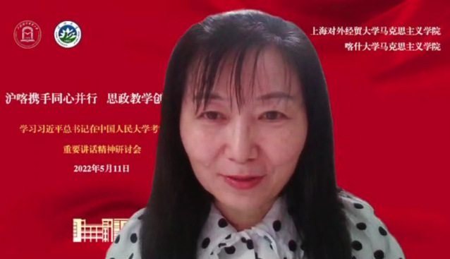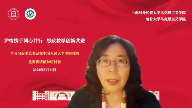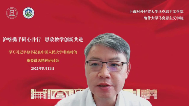 5月11日下午,上海對外經貿大學馬克思主義學院與喀什大學馬克思主義學院云端攜手,聯合舉辦“滬喀攜手同心并行 思政教學創新共進——學習習近平總書記在中國人民大學考察時的重要講話精神研討會”。會議由上海對外經貿大學黨委宣傳部部長、馬克思主義學院黨總支書記郭茜主持。