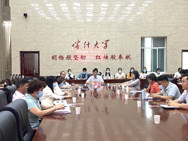 喀什大學黨委副書記鄧勇致辭。他表示,本次研討會是以更高的站位、更新的主題、更活的形式,共同探索和創新思想政治理論課教學的重要機會。兩校馬院要以本次研討會為契機,全面深入學習貫徹落實習近平總書記重要講話精神,在交流中深化理論認知,在互動中進一步探索和實踐。他期望兩校馬院持續深化交流合作,開啟新征程、共譜新篇章,以優異的成績向黨的二十大勝利召開獻禮。