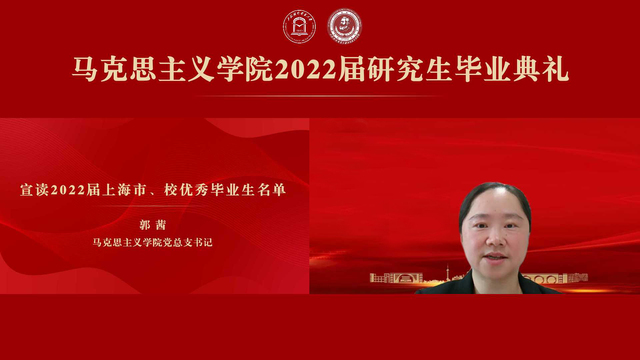 馬克思主義學院黨總支書記郭茜宣讀2022屆上海市、校優秀畢業生名單。