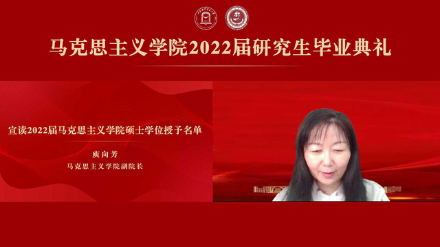 馬克思主義學院副院長庾向芳宣讀2022屆馬克思主義學院碩士學位授予名單。