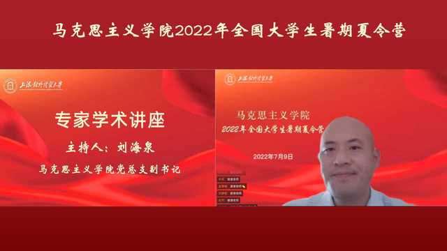 下午,學院黨總支副書記劉海泉就研究生的學業(yè)生活情況開展主旨講座,詳細介紹了我院研究生的獎助體系和主要畢業(yè)去向,立足上海這座城市并結(jié)合學校發(fā)展情況進行了生動講解。分享會由學院兼職研究生輔導員鞏瀟然主持。19級研究生朱丹丹、20級研究生彭鵬為營員們介紹了自己在上經(jīng)貿(mào)大的學習與生活,為營員們展現(xiàn)出我校各方面的學習與生活條件,希望營員們珍惜此次夏令營的寶貴機會,利用好上海對外經(jīng)貿(mào)大學馬克思主義學院搭建的平臺,和來自全國各地的優(yōu)秀學子相互學習勉勵,既收獲友誼,又收獲知識。