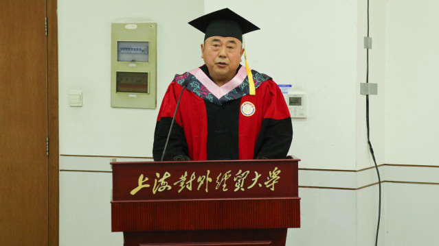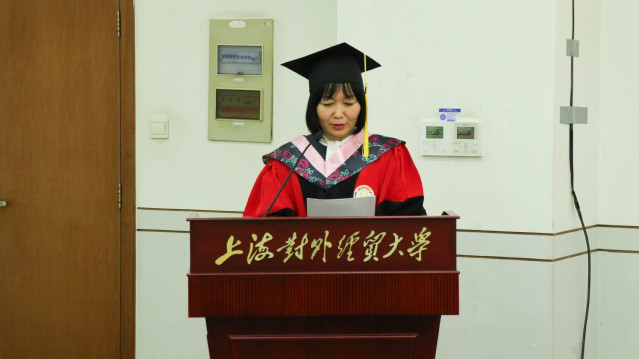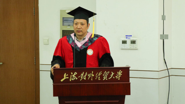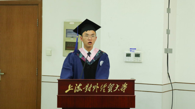 2023屆上海市優秀畢業生彭鵬作為畢業生代表發言。他回顧了兩年半來在上海對外經貿大學的成長與收獲,號召畢業生們牢記師長的教導,努力成為一名有底氣、有骨氣、有志氣的上經貿大馬院人:有底氣,不忘初心,學懂弄通專業知識;有骨氣,勇擔使命,在實踐中展現馬院學子風采;有志氣,守正創新,做新時代馬克思主義理論的傳播者。