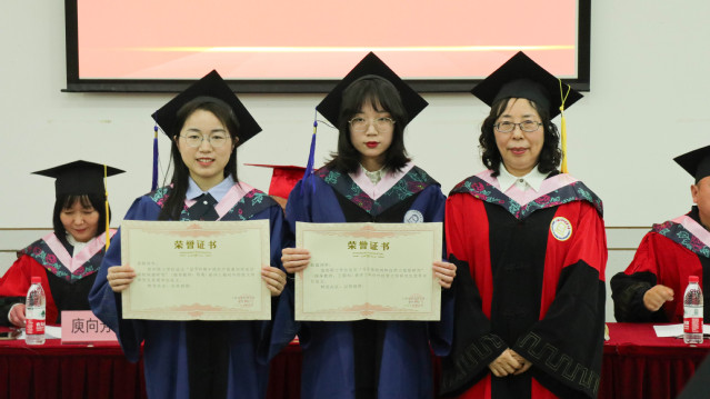 秦淑娟院長為獲得學校優秀碩士學位論文的陸磊、吳艷同學頒獎。