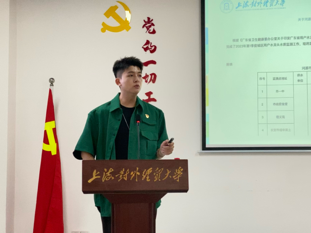 專題領學后,學生黨員葉錦濤從“擦亮眼睛,盯緊紅線”、“民有所需,我有所應”、“環境保護,青年力行”三個方面分享了家鄉廣東省河源市在環境治理的一系列舉措,并通過圖文形式與師生進行交流互動,生動展示了家鄉河源市保護和發展兼容、人與自然和諧共生的歷史成就。葉錦濤通過講述“曾經的泥濘搖身一變成了公園,山林荒地如今也是山清水秀”的家鄉故事,分享工作經驗,表示自己對黨和國家的發展有了更進一步的認識,不僅厚植了自己心中的家國情懷,更加堅定了要毫不動搖跟黨走的決心。