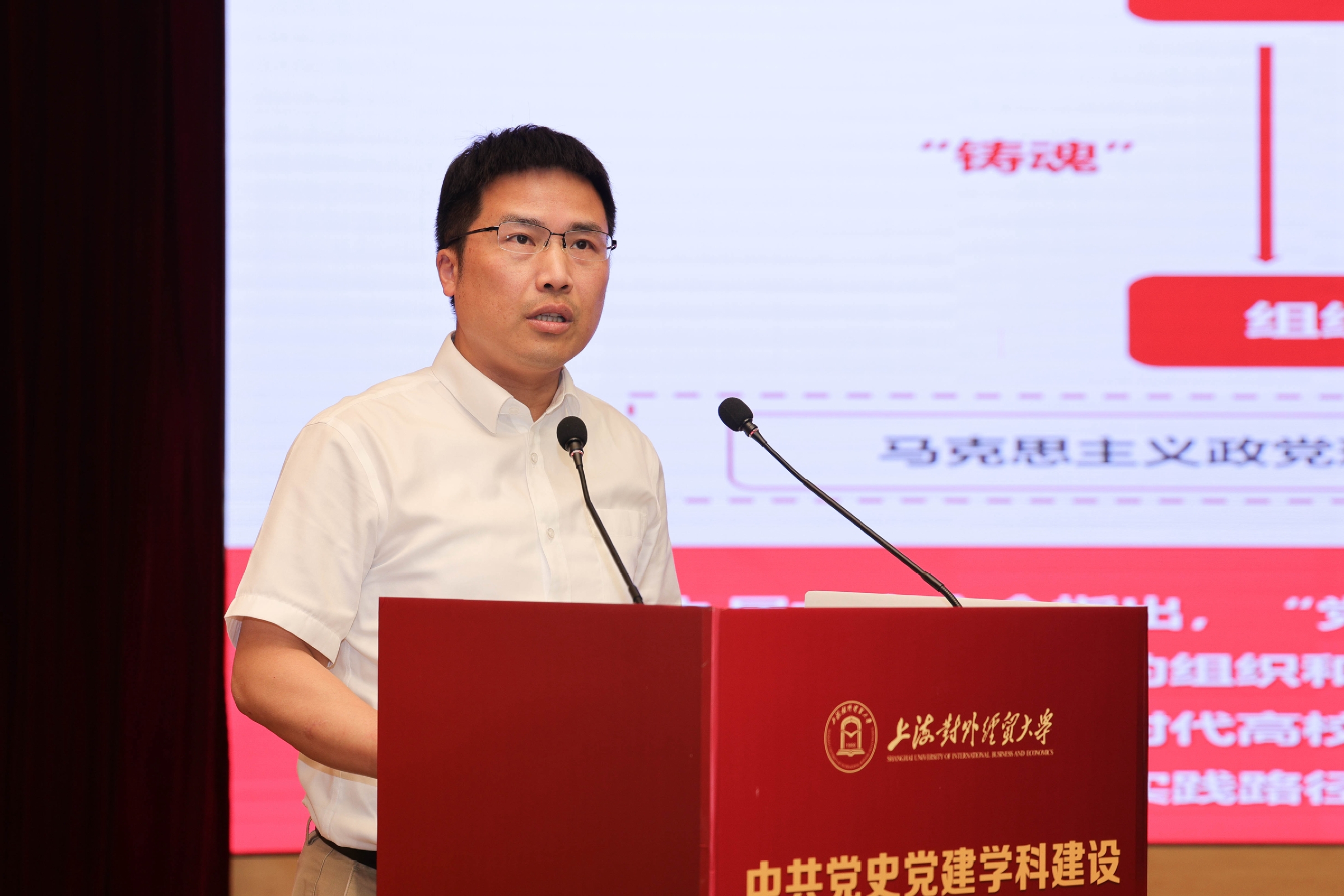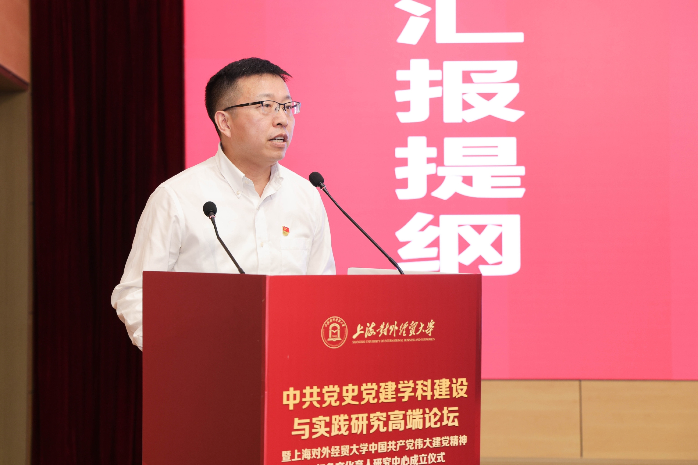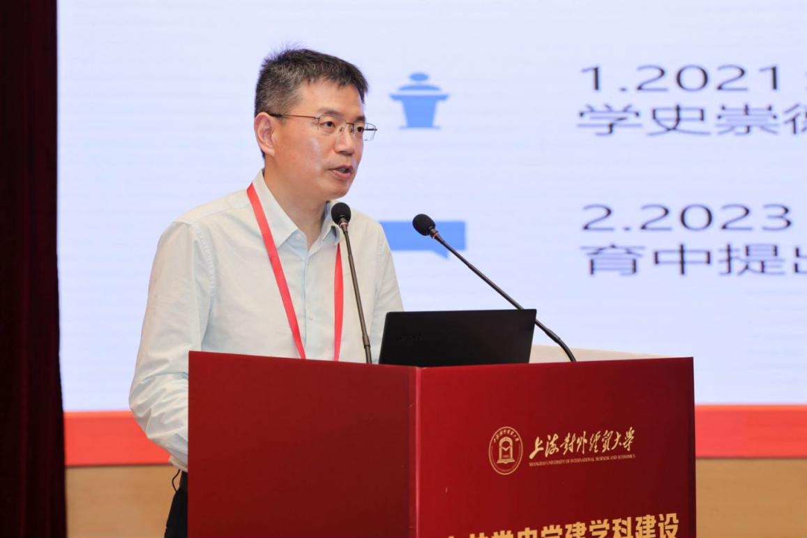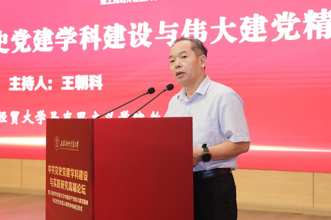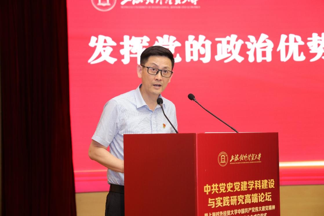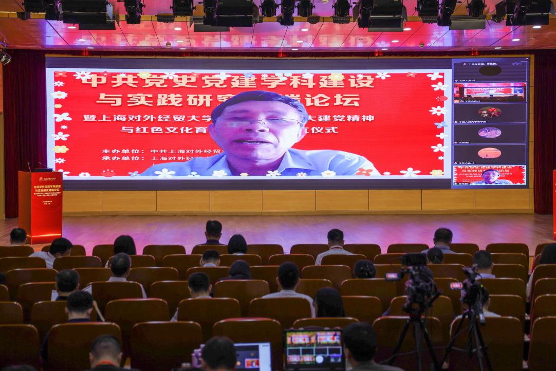 為全面學習貫徹黨的二十大精神,深入開展學習貫徹習近平新時代中國特色社會主義思想主題教育,6月18日,上海對外經貿大學舉辦中共黨史黨建學科建設與實踐研究高端論壇暨上海對外經貿大學中國共產黨偉大建黨精神與紅色文化育人研究中心成立儀式。論壇由中共上海對外經貿大學委員會主辦,上海對外經貿大學黨委組織部、上海對外經貿大學馬克思主義學院、上海高校思想政治理論課名師工作室“庾向芳工作室”承辦。來自北京師范大學、中國人民大學、湘潭大學、同濟大學、華東師范大學、華東理工大學、上海財經大學、上海大學、上海師范大學、上海應用技術大學、上海立信會計金融學院、上海工程技術大學、上海健康醫學院及上海對外經貿大學等十余所科研機構和高校的近百名專家學者參加論壇,論壇圍繞中共黨史黨建學科建設與偉大建黨精神、增強黨組織政治功能和組織功能等專題展開了廣泛和深入的討論。