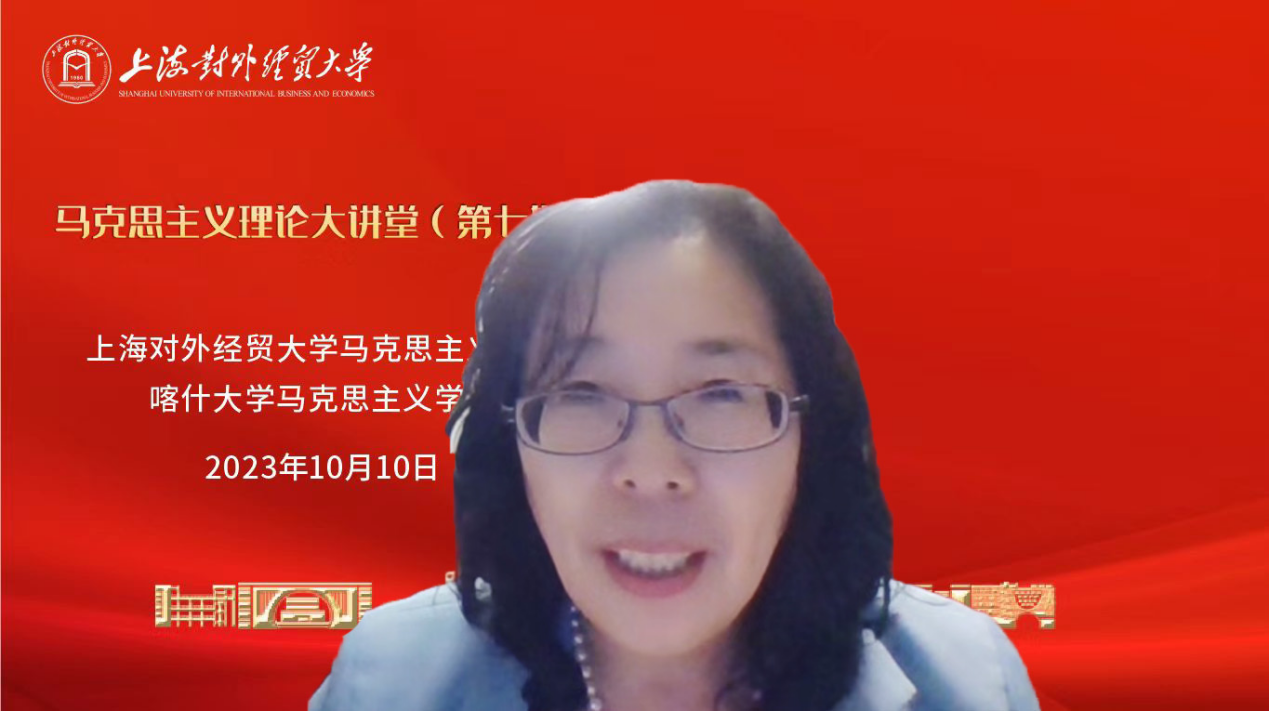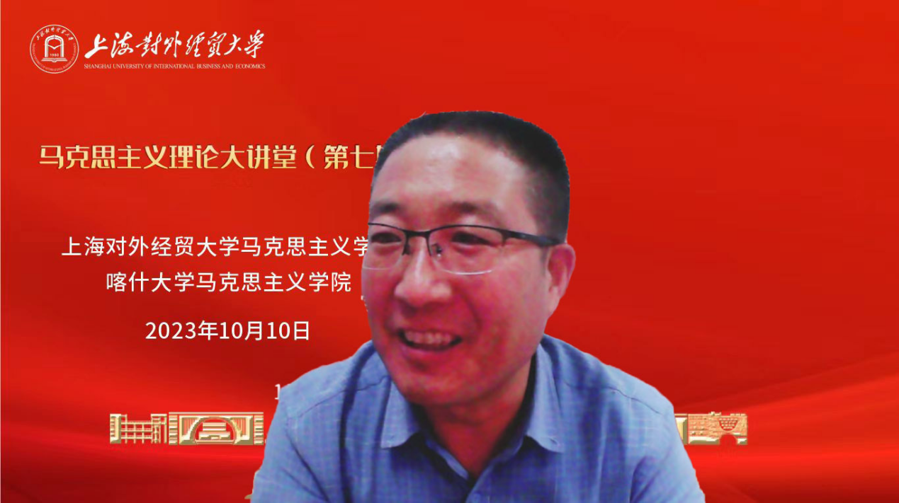 講座采用騰訊會議和視頻號形式直播。上海對外經貿大學馬克思主義學院院長秦淑娟教授主持會議,喀什大學馬克思主義學院黨委書記牛軍政出席會議,上海對外經貿大學和喀什大學師生420余人線上聆聽了講座。