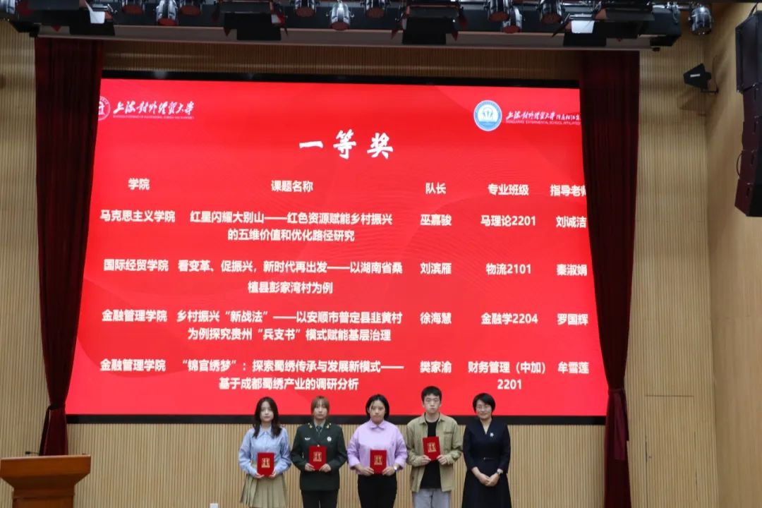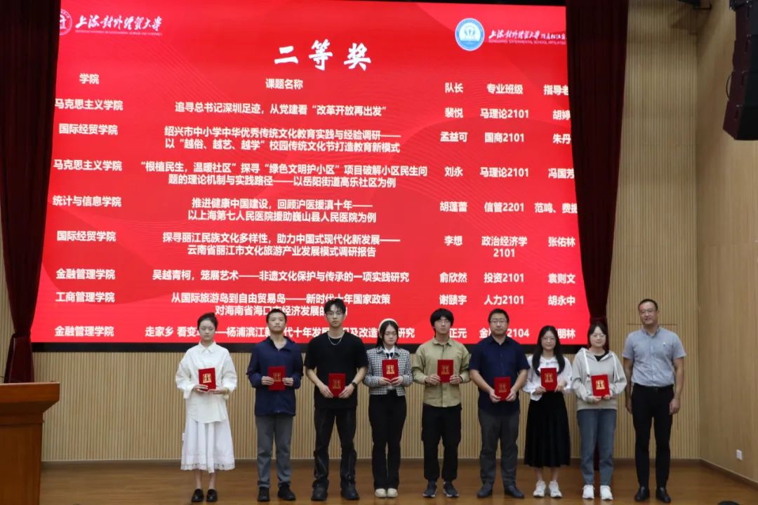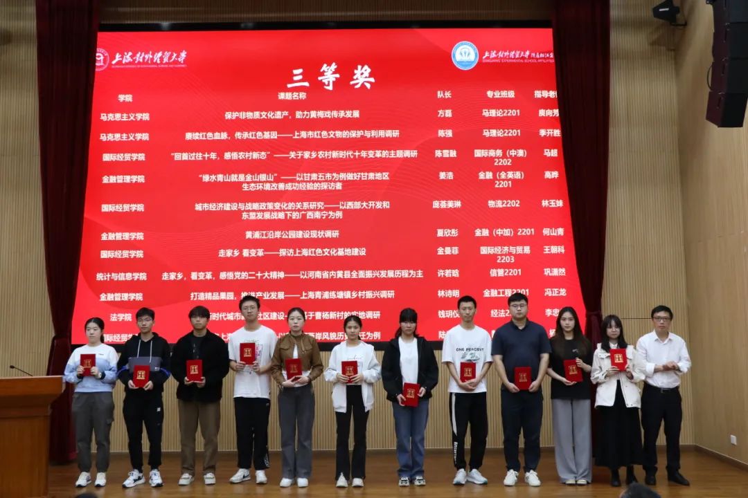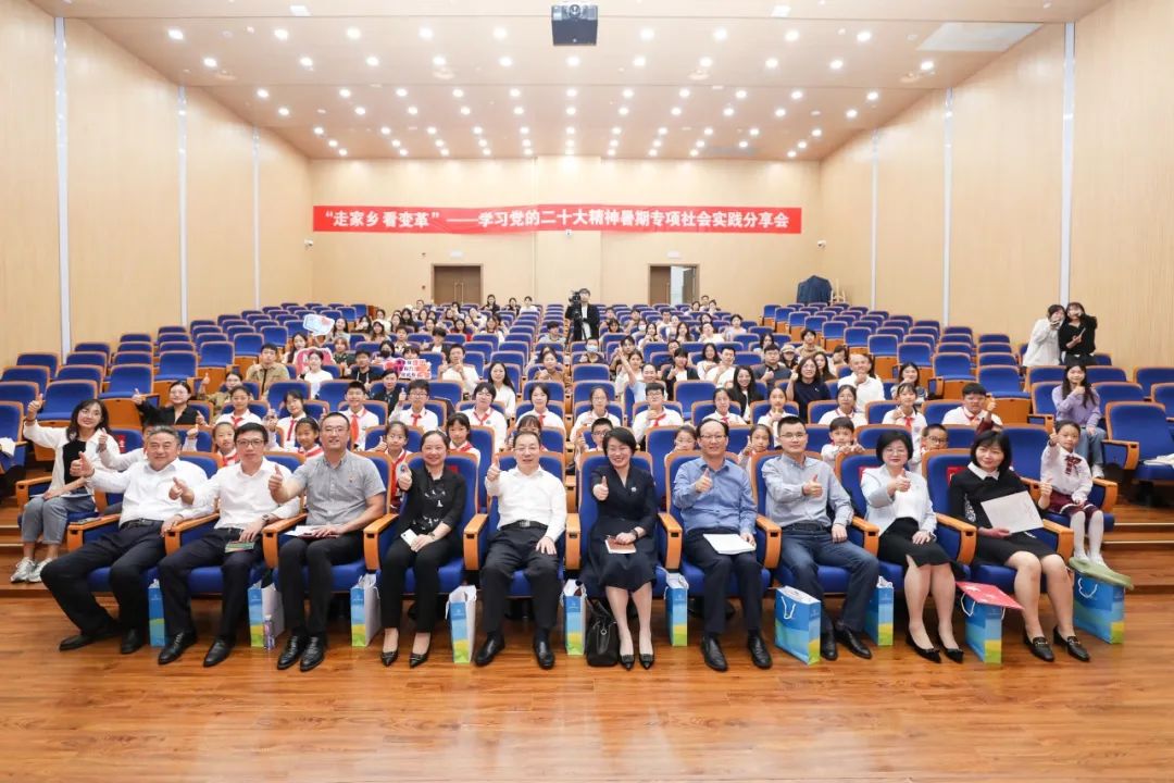 10月17日,由上海對(duì)外經(jīng)貿(mào)大學(xué)校團(tuán)委與馬克思主義學(xué)院聯(lián)合舉辦的以“走家鄉(xiāng) 看變革”——學(xué)習(xí)黨的二十大精神為主題的暑期專項(xiàng)社會(huì)實(shí)踐活動(dòng)分享會(huì)在學(xué)校松江校區(qū)思源報(bào)告廳順利舉辦。上海對(duì)外經(jīng)貿(mào)大學(xué)黨委副書(shū)記吳毅,校黨委宣傳部部長(zhǎng)郭茜,校教務(wù)處處長(zhǎng)朱建明,校團(tuán)委副書(shū)記王元義,馬克思主義學(xué)院黨總支副書(shū)記(主持工作)劉海泉,馬克思主義學(xué)院副院長(zhǎng)馮國(guó)芳、庾向芳,松江區(qū)教育局宣傳德育科科長(zhǎng)薛紅梅,上經(jīng)貿(mào)大附校黨總支書(shū)記張輝,上經(jīng)貿(mào)大附校花園分校專職副書(shū)記高麗紅,上經(jīng)貿(mào)大附校及花園分校副校長(zhǎng)程棟出席會(huì)議。分享會(huì)由劉海泉主持,學(xué)校以及附屬教育集團(tuán)的暑期社會(huì)實(shí)踐學(xué)生團(tuán)隊(duì)代表參加分享會(huì)。