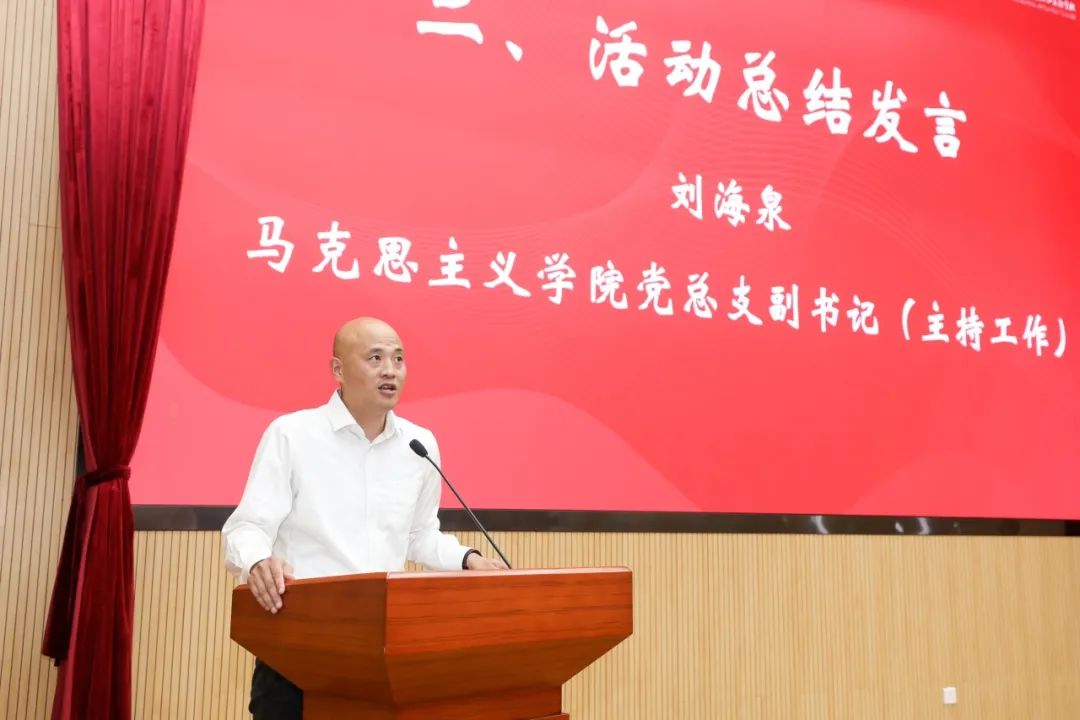 劉海泉介紹了本次馬克思主義學(xué)院暑期社會(huì)實(shí)踐調(diào)研的總體情況、特色亮點(diǎn)及成果實(shí)效。教師深入實(shí)踐教學(xué),獲取了豐富的實(shí)踐素材與案例,有助于進(jìn)一步提高思政課理論教學(xué)的吸引力和說(shuō)服力。學(xué)生從學(xué)校小課堂走進(jìn)社會(huì)大課堂,從家鄉(xiāng)成就中汲取奮進(jìn)力量,進(jìn)一步深化對(duì)馬克思主義理論和習(xí)近平新時(shí)代中國(guó)特色社會(huì)主義思想的理解運(yùn)用。學(xué)院未來(lái)將繼續(xù)強(qiáng)化社會(huì)實(shí)踐的育人目標(biāo),立足校院特色,整合育人資源,搭建協(xié)同平臺(tái),在實(shí)踐的開(kāi)放性和機(jī)制的融合性方面不斷努力,共同辦好“大思政課”。