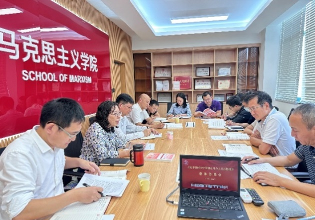 “概論”課教研室主任羅國輝對課程教學整體情況進行匯報。他從如何講好課、如何建設好課程兩個方面進行了分享。他表示,要鉆研教材框架結構,充分掌握新教材權威性強、內容精準、體系完整的特點,充分利用好集體備課的機會,通過教學研討、學習交流、示范課等多種途徑,不斷研學凝練課程的教學方法和規律。同時,教研室將圍繞“概論”課教材的主要內容,組織教學團隊編寫教學案例課件以及習題庫,形成以教材為核心,以教輔材料為支撐的立體化的教材體系。教研室將繼續優化豐富教學方式,不斷深入探索對話式教學、案例式教學、探究式教學和體驗式教學等多種形式,加強課堂教學的雙向互動。教研室將持續加強課程建設,在“學”上下硬功夫,學深悟透黨的創新理論,在“講”上下真功夫,上好青年學子的人生關鍵課,在“做”上下實功夫,高質量建好“概論”課,深入推進黨的創新理論進教材、進課堂和進頭腦。