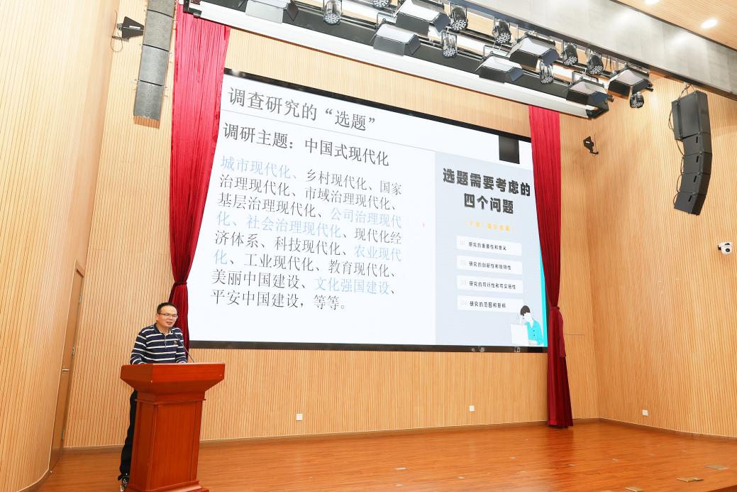 章益國(guó)在致辭中肯定了馬克思主義學(xué)院近年來(lái)在“大思政課”實(shí)踐教學(xué)中取得的成果,指出開(kāi)展調(diào)查研究,了解國(guó)情現(xiàn)實(shí)、認(rèn)識(shí)社會(huì)是樹(shù)立研究生正確認(rèn)識(shí)國(guó)情的必要基礎(chǔ),也是青年學(xué)子未來(lái)走上社會(huì)承擔(dān)民族復(fù)興大任的內(nèi)在要求。調(diào)查研究是我們黨的傳家寶,希望同學(xué)們能夠通過(guò)實(shí)踐調(diào)研“經(jīng)風(fēng)雨、見(jiàn)世面、長(zhǎng)才干”。此次論壇通過(guò)對(duì)研究生的實(shí)地調(diào)研成果進(jìn)行總結(jié)匯報(bào),深入探討中國(guó)式現(xiàn)代化的實(shí)踐路徑與發(fā)展成果,打造體現(xiàn)研究生特點(diǎn)的學(xué)術(shù)性調(diào)研品牌,是研究生思政課教育教學(xué)改革的重要舉措。未來(lái)學(xué)校也將繼續(xù)加快推進(jìn)研究生思政課教育教學(xué)高質(zhì)量發(fā)展,希望研究生們也以實(shí)際行動(dòng)踐行“中國(guó)式現(xiàn)代化”的理念,肩負(fù)起為中國(guó)式現(xiàn)代化挺膺擔(dān)當(dāng)?shù)那啻贺?zé)任。