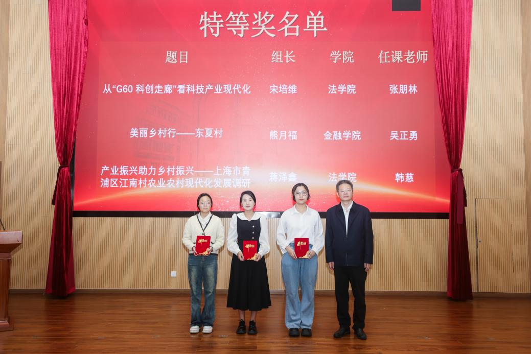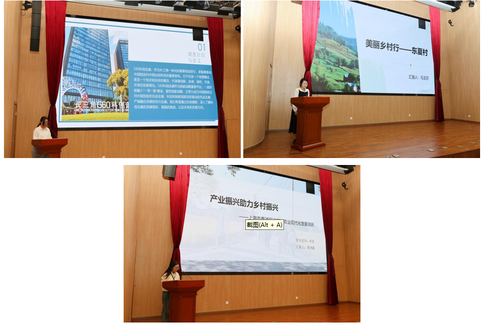 開(kāi)幕式后進(jìn)入分論壇環(huán)節(jié)。分論壇一由馬克思主義學(xué)院副院長(zhǎng)羅國(guó)輝主持,法學(xué)院宋培維、馬克思主義學(xué)院馬玉芬、法學(xué)院陶迎楠分別圍繞“從‘G60科創(chuàng)走廊’看科技產(chǎn)業(yè)現(xiàn)代化”“美麗鄉(xiāng)村行——東夏村”以及“產(chǎn)業(yè)振興助力鄉(xiāng)村振興——上海市青浦區(qū)江南村農(nóng)業(yè)農(nóng)村現(xiàn)代化發(fā)展”等主題進(jìn)行了匯報(bào),通過(guò)詳實(shí)的數(shù)據(jù)和生動(dòng)的案例,展現(xiàn)了各自調(diào)研的成果與思考。