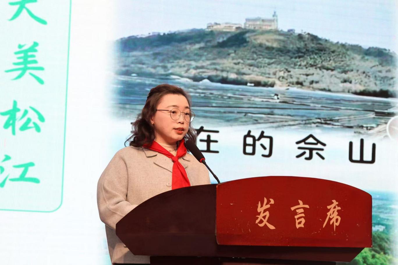 “作為本次暑期實踐活動的指導老師,我欣喜于隊員們主動探尋家鄉變遷與發展,他們用小腳丫去丈量這片美麗的土地,用小眼睛去發現家鄉變化、祖國繁榮。”上海對外經貿大學附校花園分校唐懿懿老師在分享會上這樣說道。