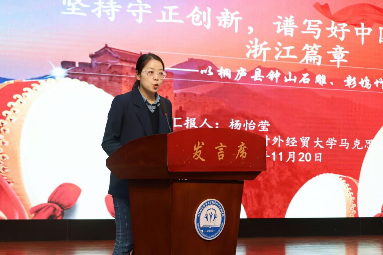 “結合本次暑期專項社會實踐,我的認識主要分為兩個方面,第一部分是傳統非遺煥發的時代魅力,第二部分是守正創新推進中國式現代化行穩致遠。并且要更加深刻地理解“兩個結合”,從中華文化到中國特色社會主義,再到今天習近平新時代中國特色社會主義思想的創立和實踐,其中內蘊的一以貫之的實質就是馬克思主義的中國化時代化,就是馬克思主義基本原理同中國具體實際相結合,同中華優秀傳統文化相結合。”上海對外經貿大學馬克思主義學院楊怡瑩老師在分享會上這樣說道。