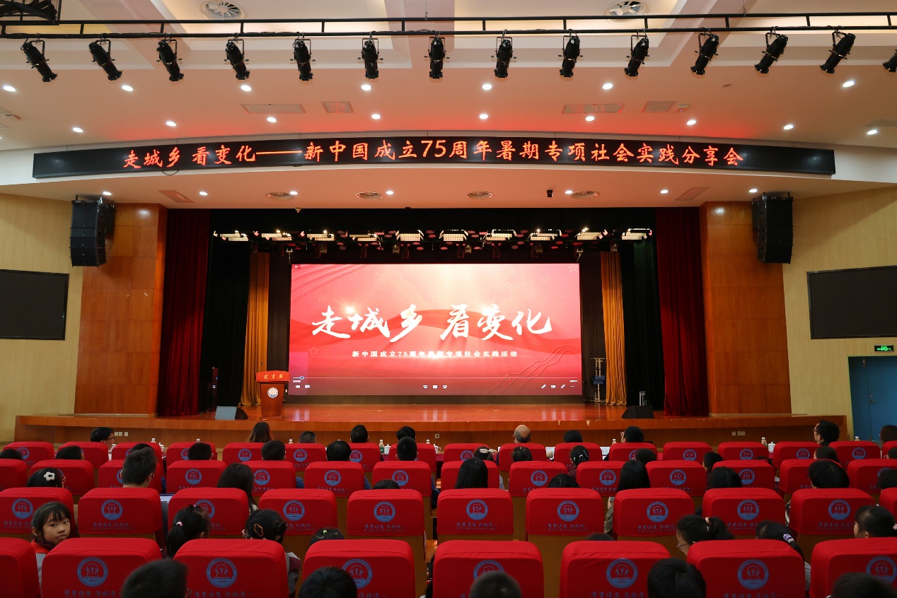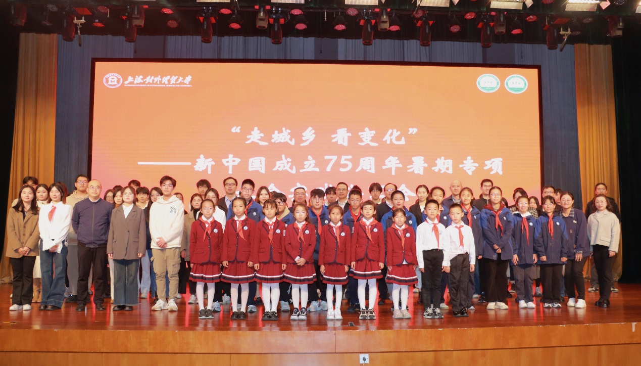 11月20日,由上海對外經貿大學校團委與馬克思主義學院聯合舉辦的“走城鄉,看變化”——新中國成立75周年暑期專項社會實踐分享會在上海對外經貿大學附屬松江實驗學校思源劇場順利舉辦。上海對外經貿大學副校長徐永林、校教務處處長朱建明、校黨委學工部副部長、團委書記司徒力云、馬克思主義學院黨委書記劉海泉、馬克思主義學院黨委副書記張帥、馬克思主義學院副院長羅國輝、松江區教育局宣傳德育科副科長孫薈涵、上經貿大附校校長陳偉平、上經貿大附校花園分校專職副書記高麗紅、上經貿大附校及花園分校副校長程棟出席會議。會議由張帥主持,社會實踐大中小學生團隊代表及喀什大學實踐團隊師生代表線上線下共同參與分享會。