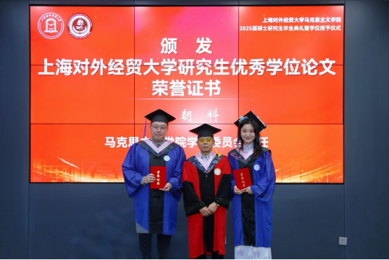 王朝科為獲得學(xué)校研究生優(yōu)秀學(xué)位論文的同學(xué)頒發(fā)榮譽證書。這些同學(xué)在學(xué)術(shù)研究中取得了突出成果,他們的論文不僅展現(xiàn)了扎實的學(xué)術(shù)功底,更體現(xiàn)了對馬克思主義理論的深入思考和創(chuàng)新探索。