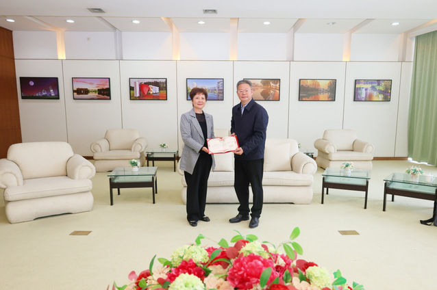 在課程正式開始前,上海對外經貿大學黨委副書記、紀委書記章益國會見了李嵐,并為李嵐頒發聘書,聘任她擔任馬克思主義學院兼職教授。