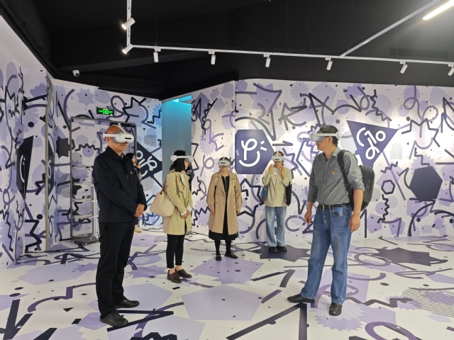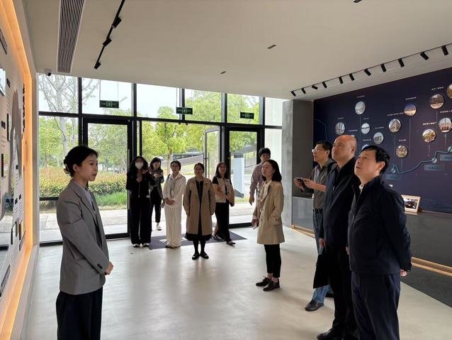 活動伊始,劉海泉一行在田虹飛的陪同下參觀了元上蘇河體驗館。通過大空間 VR 等新型數(shù)字技術(shù),將蘇州河普陀段的紅色歷史文化資源與現(xiàn)代科技相結(jié)合,為參觀者帶來沉浸式的文化體驗,深刻感受到科技賦能黨建的創(chuàng)新實踐。