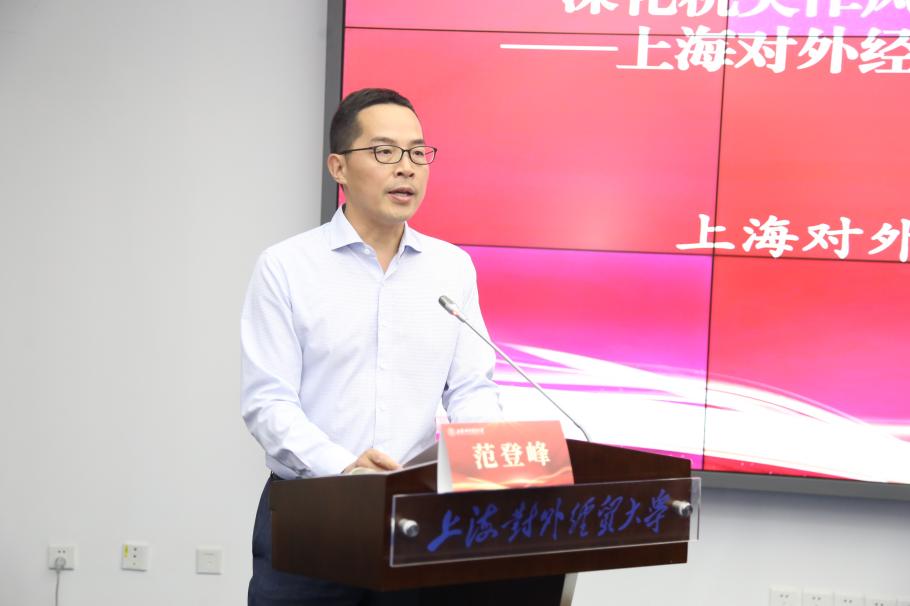 上海對外經(jīng)貿(mào)大學(xué)機關(guān)黨委書記范登峰作“深化機關(guān)作風(fēng)建設(shè),推動管理服務(wù)提質(zhì)增效——上海對外經(jīng)貿(mào)大學(xué)機關(guān)作風(fēng)建設(shè)探索與實踐”的報告。他認為新時代背景下延安精神對于加強和改進高校機關(guān)黨的建設(shè)、作風(fēng)建設(shè)具有重要的現(xiàn)實意義和實踐意義。
