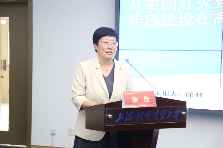上海對外經(jīng)貿(mào)大學(xué)紀委副書記徐佳作“從棗園燈火到象牙塔清風(fēng):作風(fēng)建設(shè)在高校的傳承與創(chuàng)新”的報告。她解讀了延安精神與新時代作風(fēng)建設(shè)的價值聯(lián)系,分析了現(xiàn)階段高校作風(fēng)建設(shè)存在的突出問題,探討了延安精神在高校作風(fēng)建設(shè)中的傳承與創(chuàng)新的實踐路徑。