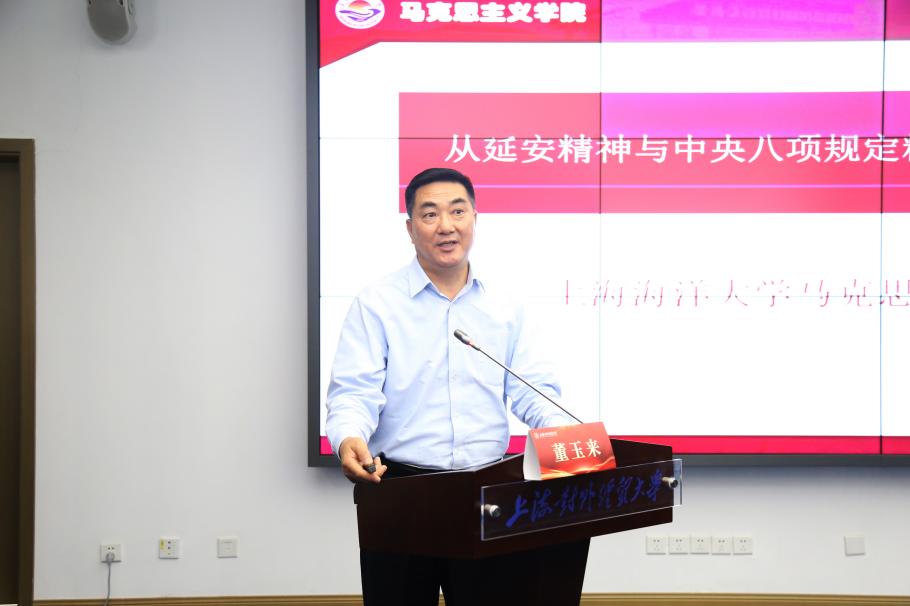 上海市延安精神研究會副會長、上海海洋大學(xué)馬克思主義學(xué)院董玉來教授作“從延安精神與中央八項規(guī)定精神看新時代黨的作風(fēng)建設(shè)”的報告。他認為延安精神與中央八項規(guī)定精神跨越時空交相輝映,共同構(gòu)筑新時代作風(fēng)建設(shè)的精神燈塔與實踐指南;并從延安精神是新時代黨的作風(fēng)建設(shè)的源頭活水,中央八項規(guī)定精神是新時代黨的作風(fēng)建設(shè)的破題之鑰,新時代黨的作風(fēng)建設(shè)的實踐路徑思考等三個方面進行闡釋。