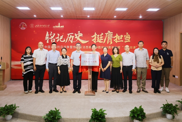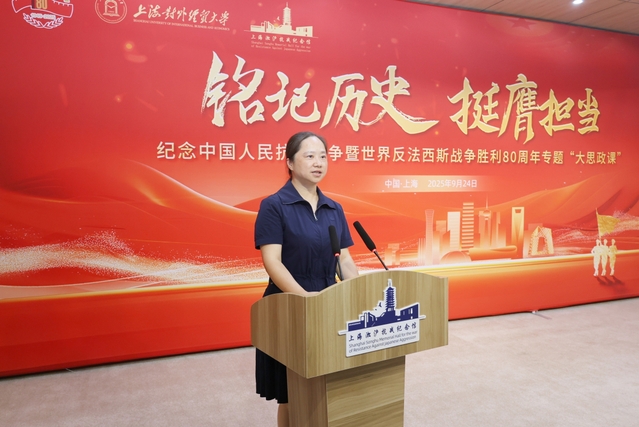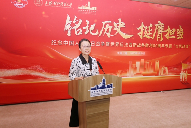 9月24日,上海對(duì)外經(jīng)貿(mào)大學(xué)與上海淞滬抗戰(zhàn)紀(jì)念館圍繞“銘記歷史,挺膺擔(dān)當(dāng)”主題,聯(lián)合舉辦紀(jì)念中國(guó)人民抗日戰(zhàn)爭(zhēng)暨世界反法西斯戰(zhàn)爭(zhēng)勝利80周年專題“大思政課”,把紅色資源融入思政育人實(shí)踐,大中小學(xué)生同上一堂生動(dòng)的思政課。上海對(duì)外經(jīng)貿(mào)大學(xué)黨委副書記、副校長(zhǎng)沈藝,寶山區(qū)委宣傳部副部長(zhǎng)、區(qū)委網(wǎng)信辦主任劉德龍,上經(jīng)貿(mào)大黨委常委、宣傳部長(zhǎng)郭茜,寶山區(qū)文化和旅游局副局長(zhǎng)姜芬芬,上海淞滬抗戰(zhàn)紀(jì)念館館長(zhǎng)孔祥俊,上經(jīng)貿(mào)大馬克思主義學(xué)院黨委書記劉海泉、黨委副書記張帥出席活動(dòng),上海對(duì)外經(jīng)貿(mào)大學(xué)及其附屬松江實(shí)驗(yàn)教育集團(tuán)的師生代表共同參與,在歷史現(xiàn)場(chǎng)接受深刻的精神洗禮。