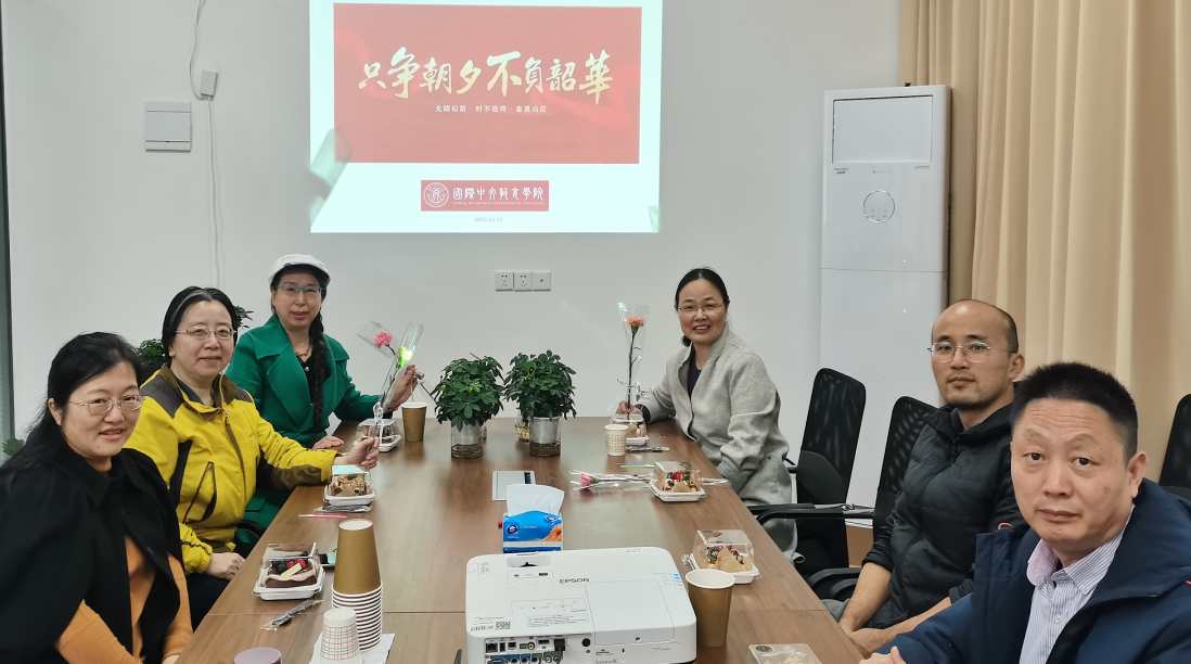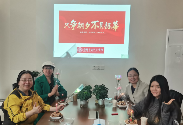 11月21日,天空晴朗,陽光明媚。國際中文教育學(xué)院為部分教師舉辦了集體生日活動。此次活動的主角為2022及2023年度年齡逢五、逢十的老師們,她們中有學(xué)院學(xué)術(shù)教學(xué)指導(dǎo)委員會主任委員和專業(yè)主任李春桃老師、學(xué)院九三學(xué)社成員副教授李琳老師、學(xué)院教學(xué)秘書暨兼職組織員汪江嫣老師和學(xué)院黨支部書記鄒囡囡老師。