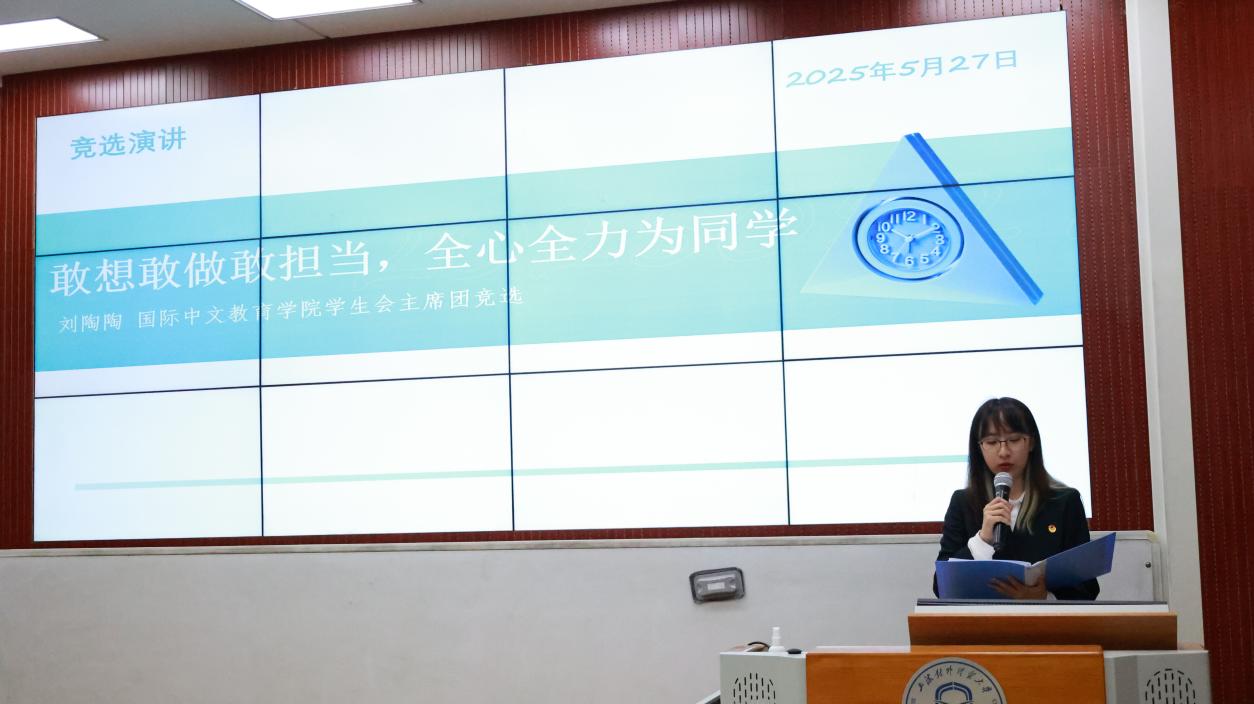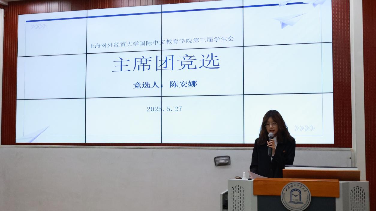 大會通過了《國際中文教育學院第二屆學生會工作報告》等文件,選舉產生由陳安娜、林星雨(按姓氏筆畫排序)組成的學院第三屆學生會主席團,最終在激昂的國際歌中圓滿落幕。