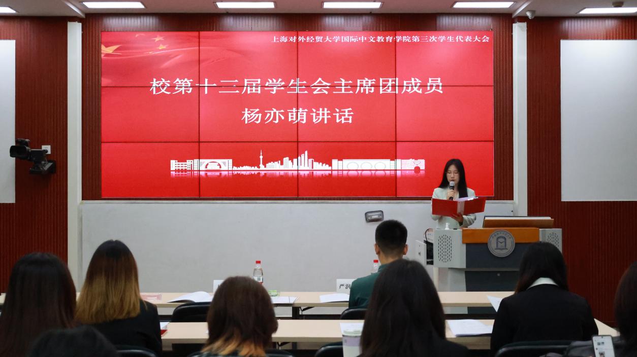 5月27日下午,上海對外經貿大學國際中文教育學院第三次學生代表大會于圖文信息大樓532順利召開。學院團總支書記、學生會秘書長嚴潤杰,校第十三屆學生會主席團成員楊亦萌,學院各年級15名代表共同出席。