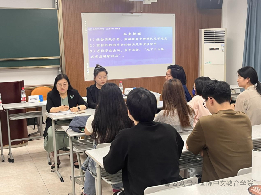 6月10日下午,國(guó)際中文教育學(xué)院在學(xué)思樓D302、306順利舉辦2026屆畢業(yè)生就業(yè)工作動(dòng)員會(huì)。學(xué)院全體領(lǐng)導(dǎo)班子成員、招生就業(yè)處何蓓蓓、上海新南洋昂立教育科技有限公司校招經(jīng)理?xiàng)顦?lè)儀、畢業(yè)班班主任及全體2026屆學(xué)生參會(huì)。會(huì)議由畢業(yè)班輔導(dǎo)員嚴(yán)潤(rùn)杰主持。