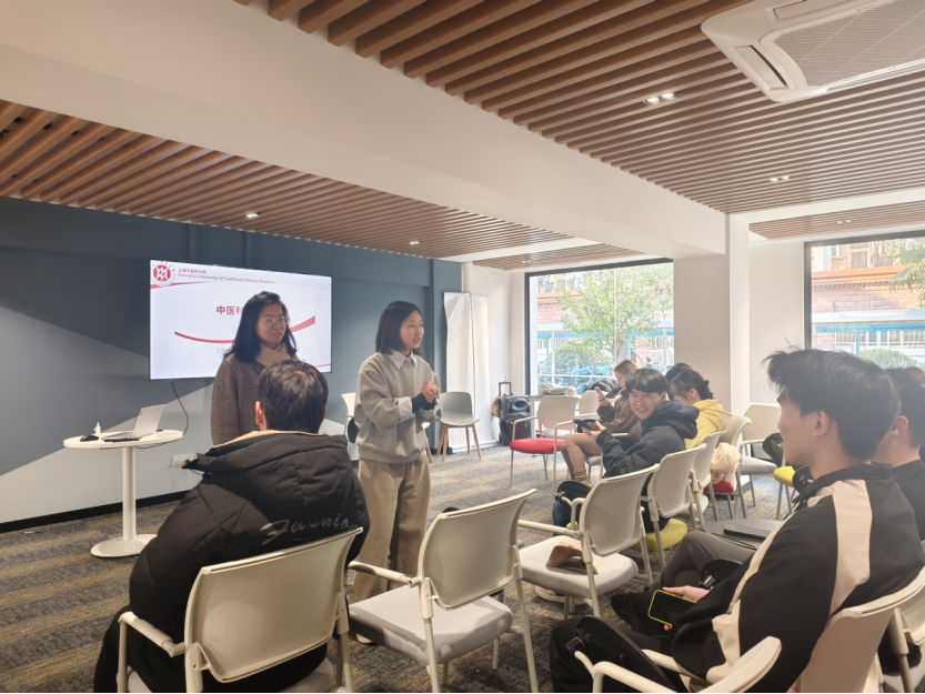 為更好地結(jié)合留學(xué)生第一課堂漢語教學(xué)內(nèi)容,讓學(xué)生親身體演漢語第一課堂中的中國文化,加深留學(xué)生對中醫(yī)文化的理解,12月21日,國際中文教育學(xué)院邀請上海中醫(yī)藥大學(xué)研究生賴碧怡、李儀曼在學(xué)生社區(qū)開展中醫(yī)體驗(yàn)活動。