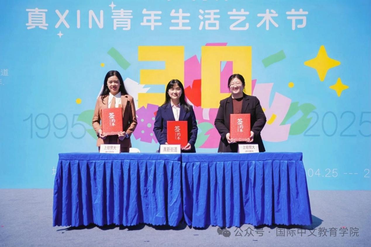 集會(huì)現(xiàn)場(chǎng),嘉定區(qū)團(tuán)委書記顧磊敏、上海對(duì)外經(jīng)貿(mào)大學(xué)團(tuán)委書記司徒力云、真新街道黨工委副書記張楊輝、街道辦事處副主任楊典共同啟動(dòng)真XIN青年生活藝術(shù)節(jié)。真新街道與上海對(duì)外經(jīng)貿(mào)大學(xué)會(huì)展與傳播學(xué)院、國(guó)際中文教育學(xué)院就依托街道“創(chuàng)享灣”研學(xué)基地開展大學(xué)生實(shí)踐活動(dòng)進(jìn)行三方共建簽約。