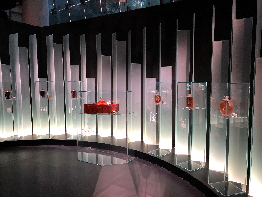 一樓至二樓的環形通道處57瓶麥卡倫珍稀年份系列威士忌首度集體亮相,以空前的豪華陣容成就一道全場尤為亮眼的風景線。