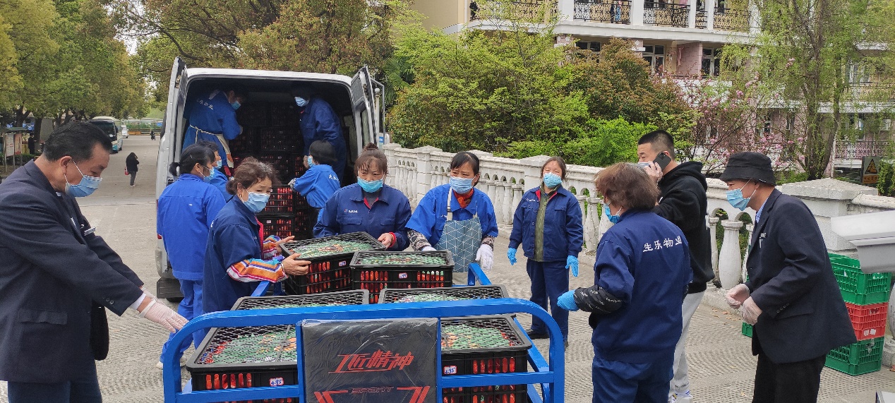 3月31日,裝載著校工會(huì)合作伙伴上海秋瓏實(shí)業(yè)有限公司無(wú)償捐贈(zèng)的3000斤水果車輛停在了松江校區(qū)學(xué)生社區(qū)的大門(mén)口。經(jīng)過(guò)消殺后,1800斤橙子和1200斤蘋(píng)果送進(jìn)了學(xué)生社區(qū),為學(xué)??箵粢咔橐痪€的工作人員及封控在宿舍的學(xué)生送去了一份溫暖和愛(ài)心。