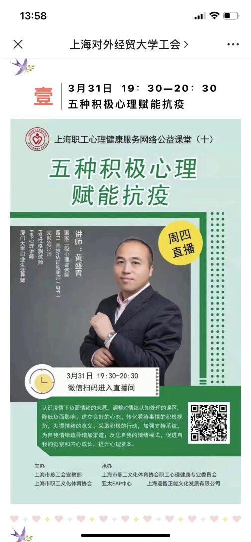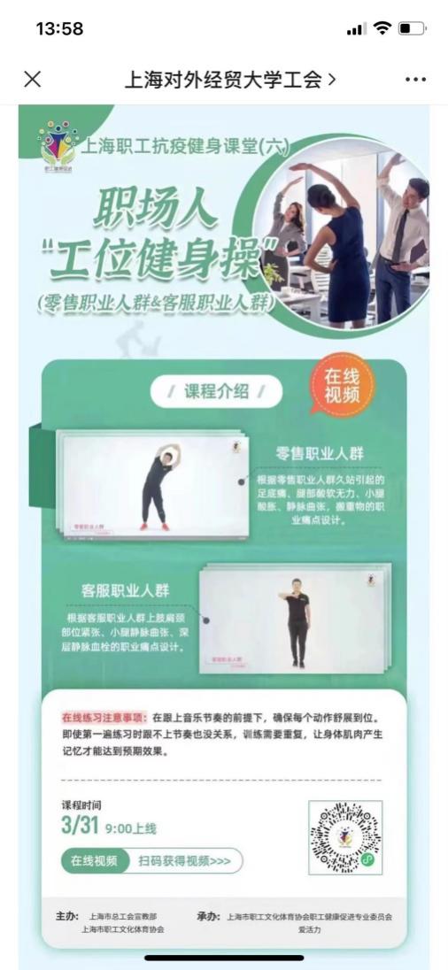 當前,上海的疫情防控形式嚴峻復雜,多數教職工們都處在居家辦公模式中,為了在疫情防控期間也能豐富教職工的業余生活,校工推出系列“互聯網+職工課堂”。