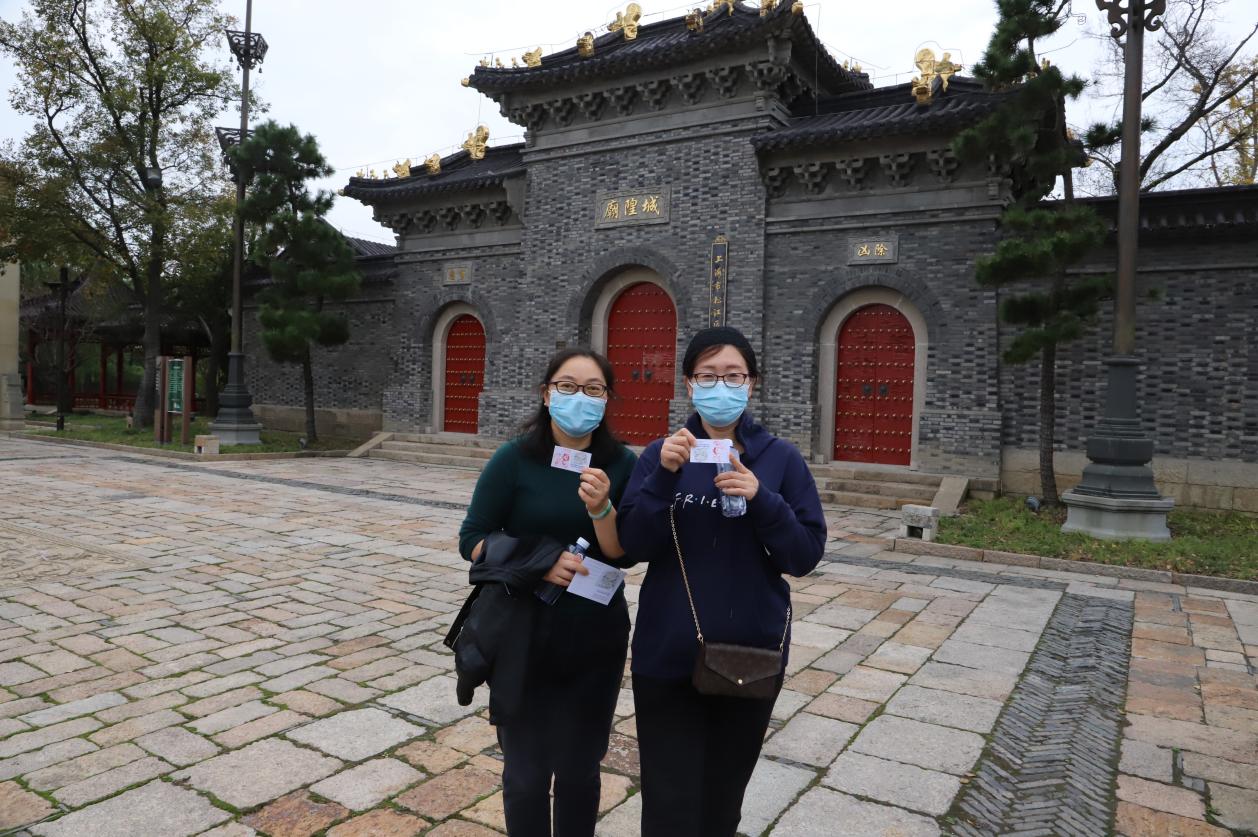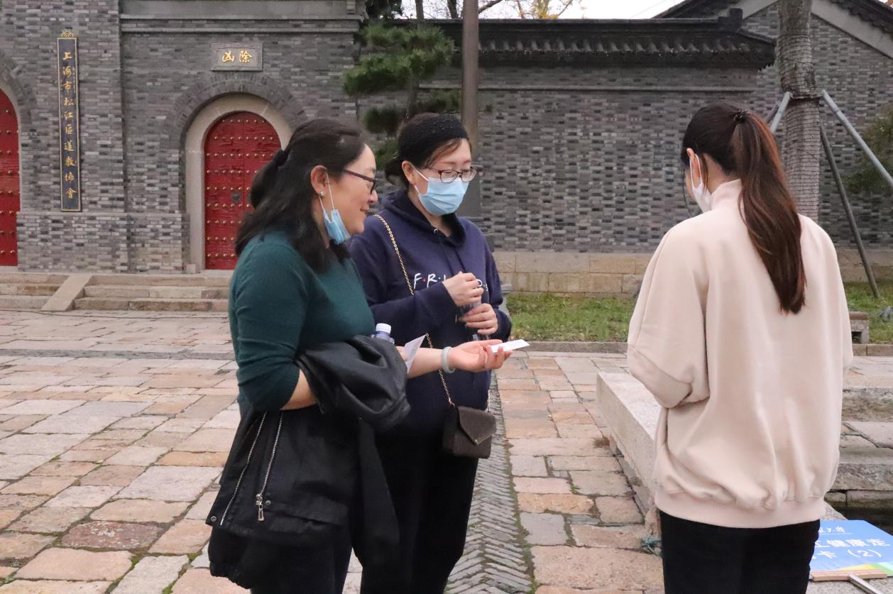 下午一點(diǎn),教職工們乘坐大巴車一同前往廣富林文化遺址公園。在活動正式開始之前,志愿者為教職工發(fā)放了活動卡片及紀(jì)念明信片。隨后,教職工們在朱雀門前共同合影。