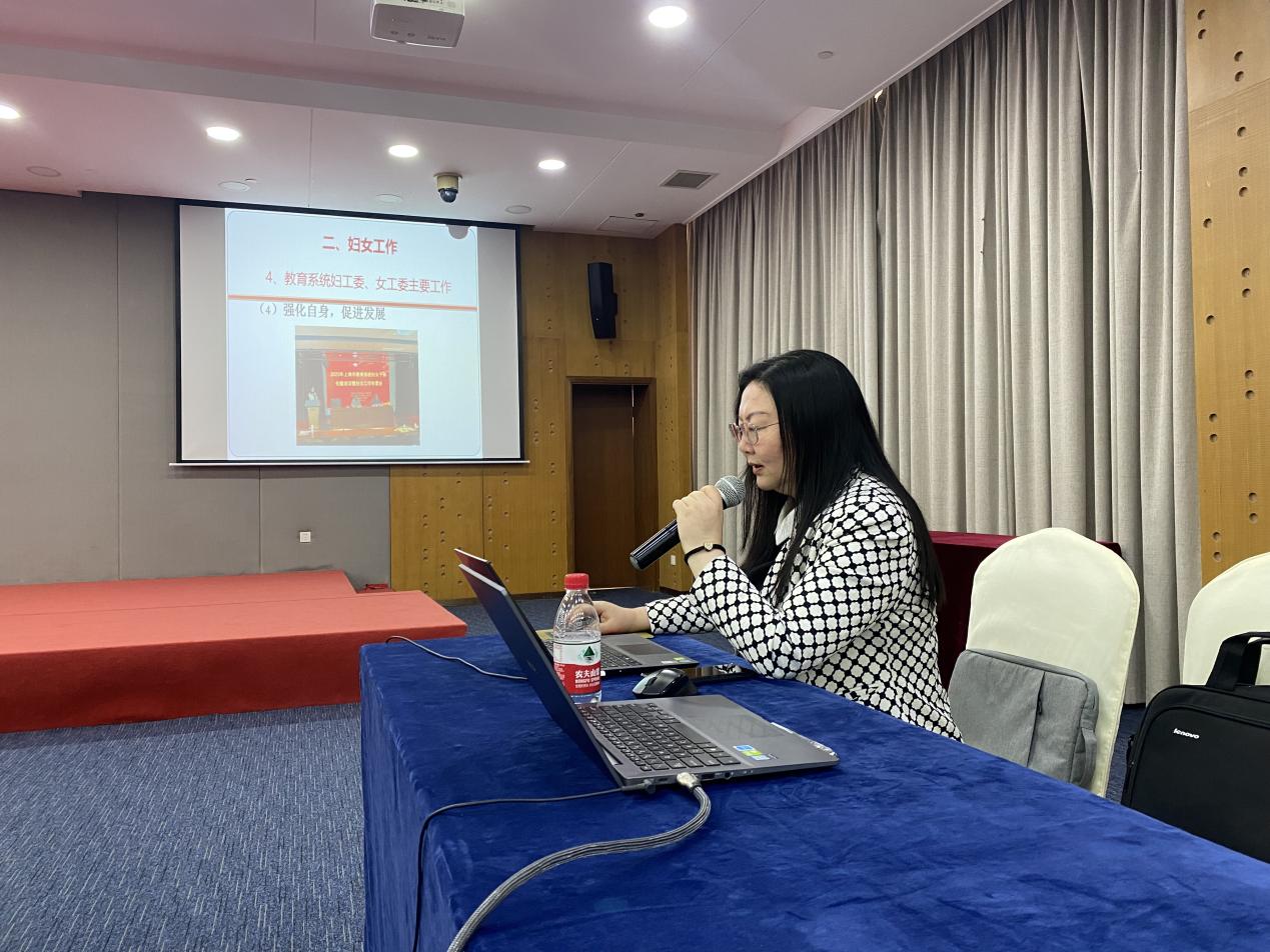 上海市教育系統婦工委副主任張芳為參加培訓的工會干部做了婦女工作實務的培訓。張芳介紹了婦女組織、婦女工作(與婦聯和市總女職工委員會相關的)特點和總體情況以及教育系統婦女組織近期計劃開展的主要工作。同時,她傳達了上海市第十六次婦女代表大會精神。她強調是婦工委的工作目標就是把教育系統婦女組織建設成為黨開展婦女工作的堅強陣地,深受廣大女教職工信賴和熱愛的溫暖之家。