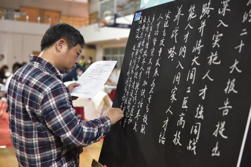 比賽現場,氣氛緊張而熱烈,參賽教師一展風采,書法行云流水、一氣呵成;板書圖文并茂、美觀大方;鋼筆字清晰工整、自然流暢。三筆字比賽的書寫內容由統一命題和自行創作兩部分組成。經專家組評定,我協會教師王元昆獲得書法·高校(含直屬單位)組三等獎。
