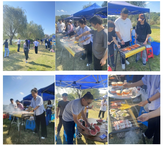 人員到齊后,學院工會組織老師們開展了一些趣味活動,大家參與性都很高。特別是中午組織大家一起動手做燒烤,更是把本次秋游活動氣氛帶到了高潮。每個烤爐前都圍滿了老師,有負責燒烤的,有負責分揀的,有負責擺放的。當然,更多的老師是在負責享受烤制好的美味,大家邊烤邊吃邊比較看看哪個老師烤的專業地道,陣陣歡聲笑語,把老師們身上的疲憊一掃而空。學院工會還為本次秋游活動精心準備了甜點和水果,配上燒烤,真是一頓難忘的美味大餐!
