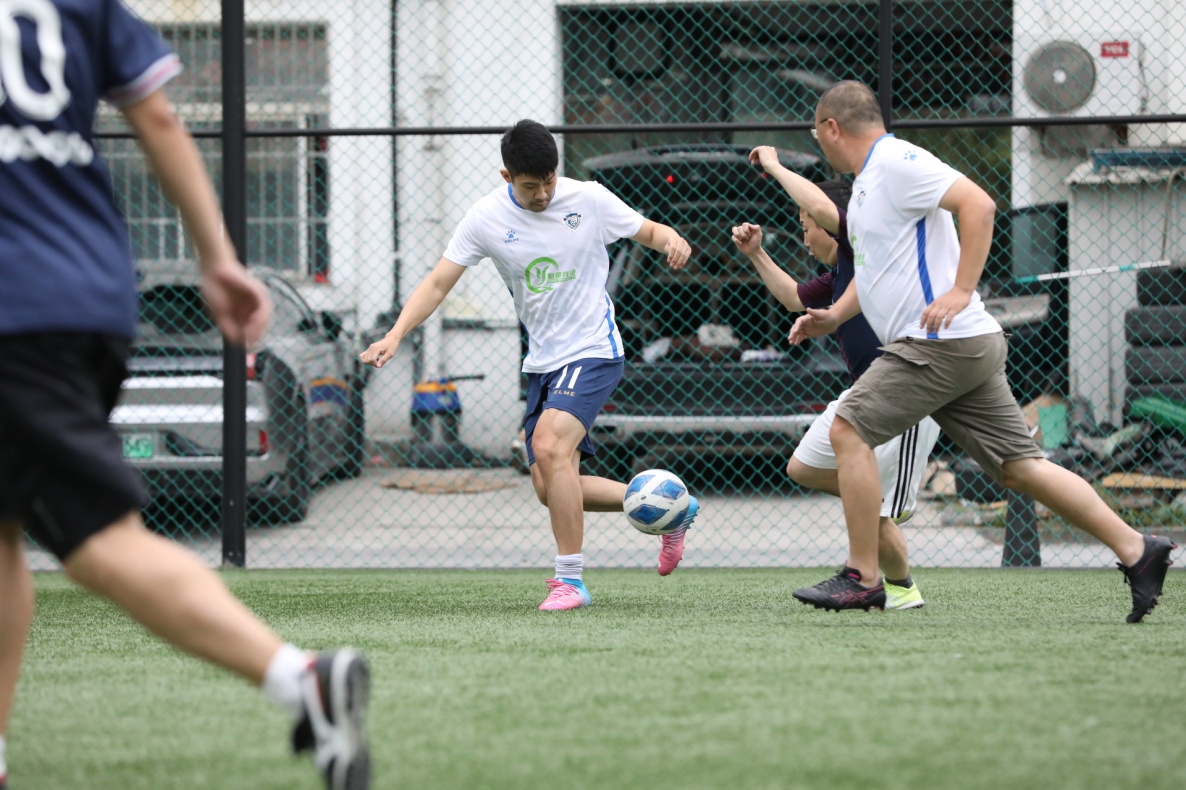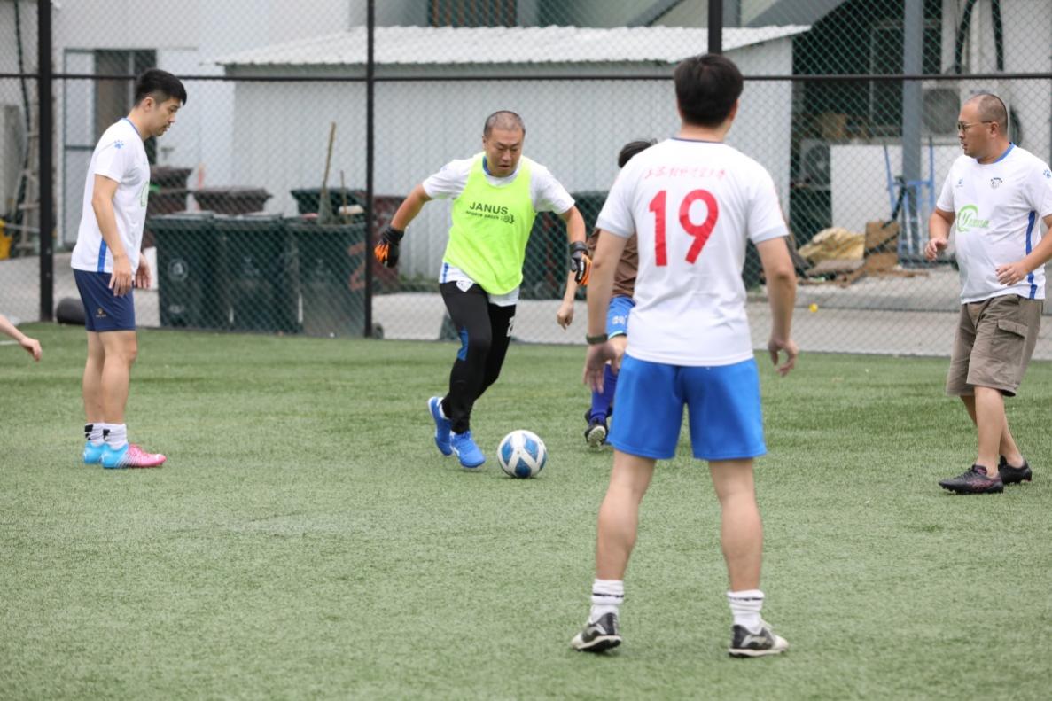 比賽當天,風輕云淡,雙方球隊盡遣主力,球場上洋溢著濃厚的競技氛圍。教工足協和泗涇隊的球員們兢兢業業,奮力拼搏,為觀眾獻上了一場精彩絕倫的比賽。盡管場地比較小,但雙方依然打出了精彩的對攻,雙方的進球數交替上升。雙方隊員在球場上揮灑汗水,體驗著國慶假期最后一天的休閑時光。經過全場四節的比賽,上海對外經貿大學教工足協以3球的優勢,獲得了最終的勝利。雖然比賽結果不是最重要的,但每位球員都付出了百分之百的努力,贏得了大家的尊重和掌聲。